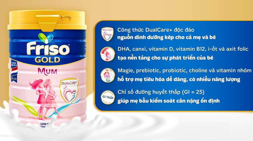 – Sữa bột hương vani, sữa dành cho bà mẹ mang thai và cho con bú đặc biệt chứ FOS chuỗi ngắn cải thiện nhu động đại tràng giúp giảm tình trạng táo bón thường gặp trong thai kì.